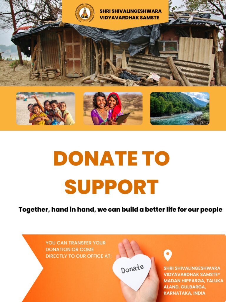 Thank you for considering a donation to SRI SHIVALINGESHWAR VIDYAVARDHAK SAMSTE. Your contribution helps us support and empower those in need. We are committed to ensuring that every donation is used in the most impactful way possible, reaching the rightful beneficiaries.