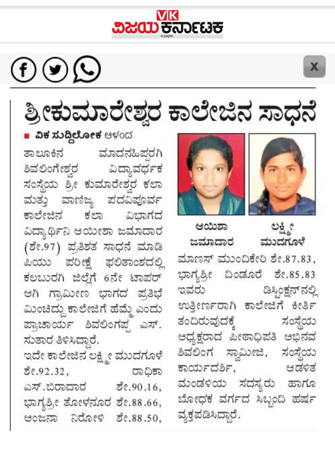 Our institution provides nutritious food and value-based quality education to rural children. At our newly established Shri Kumareshwara PU College, a team of experienced lecturers, with the support of the principal, has achieved excellent academic results. The student Aysha has secured top ranks, and our institution is always ready to provide her with the necessary support.